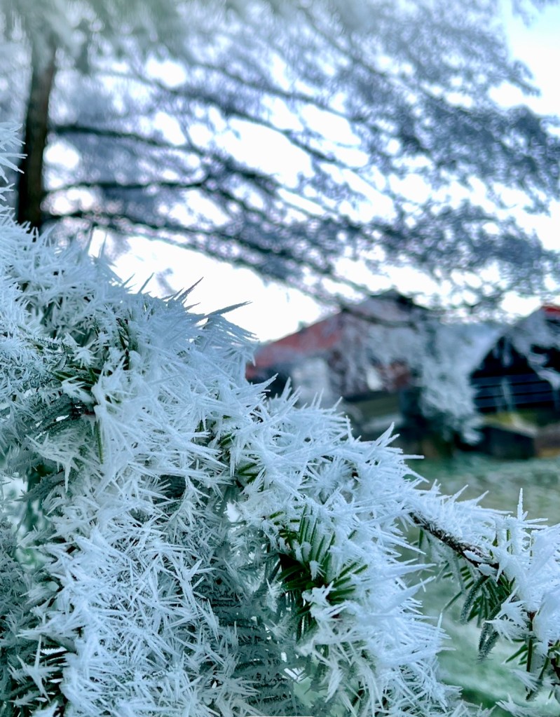 Gerade in den letzten Tagen hatten wir hier, rund um den Pferdehof und unser Haus, eine magisch-mystische Stimmung. Tage voller Raureif auf Bäumen und auf der Wiese und schemenhaft die Pferde auf der Koppel, manchmal in hellblauen Nebel gehüllt, hi und da durchbricht ein Böller in der Ferne das Geheimnisvolle, Gedämpfte.